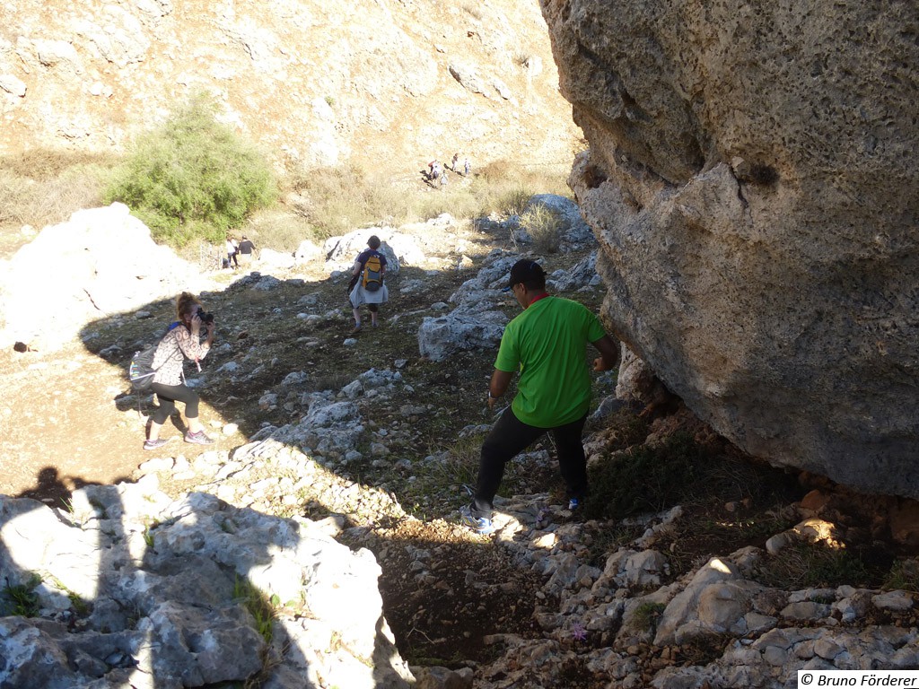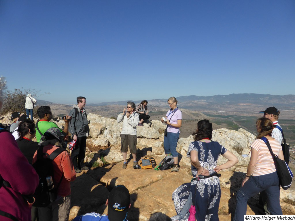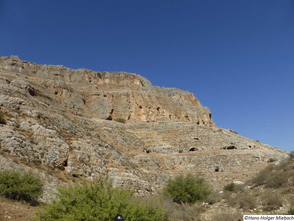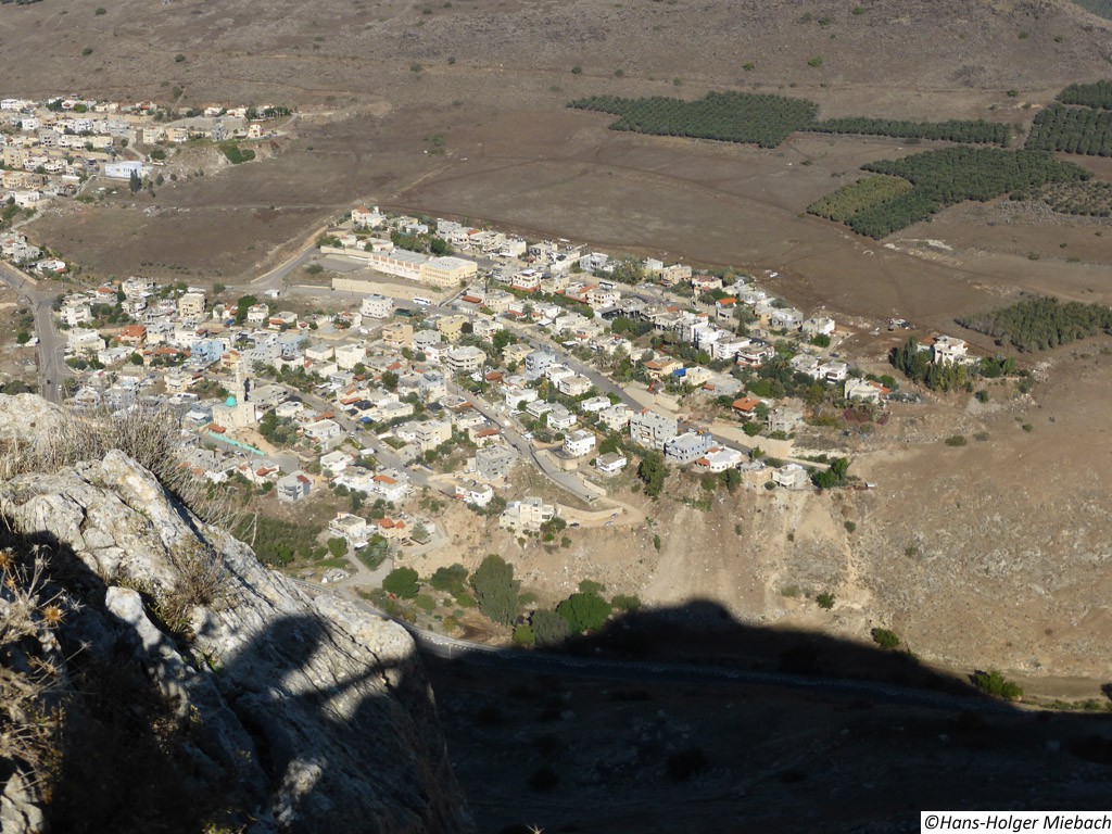 Der Jesus-Pfad ist ein 65 Kilometer langer Wanderweg. Er führt vom Stadtzentrum Nazareths über den Berg Tabor bis nach Kapernaumvon. Dieser Weg verläuft auch über die Klippen von Arbel, von denen sich ein traumhafter Blick auf den See Genezareth eröffnet. In den Höhlen unter den Klippen verschanzten sich einst Rebellen vor den Schergen des Herodes. Biblische Bezüge: Jesus persönlich soll hier vor mehr als 2000 Jahren auf dem Weg nach Kapernaum die Klippen von Arbel hochgeklettert sein, um von Nazareth nach Kapernaum zu gelangen. Das Hintergrundbild zeigt den See Genezareth, vom Arbel aus gesehen. |