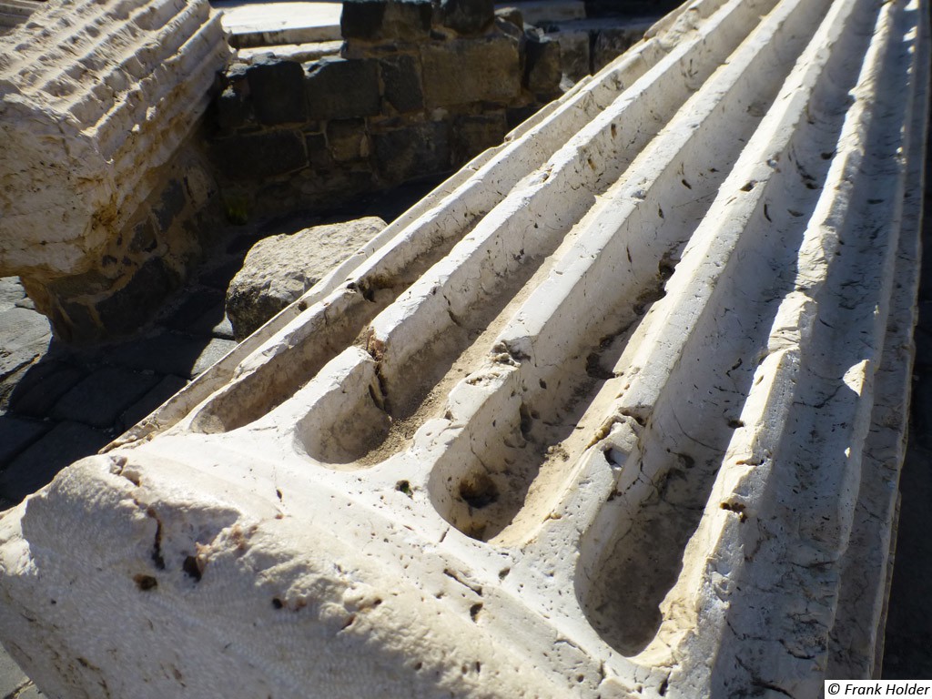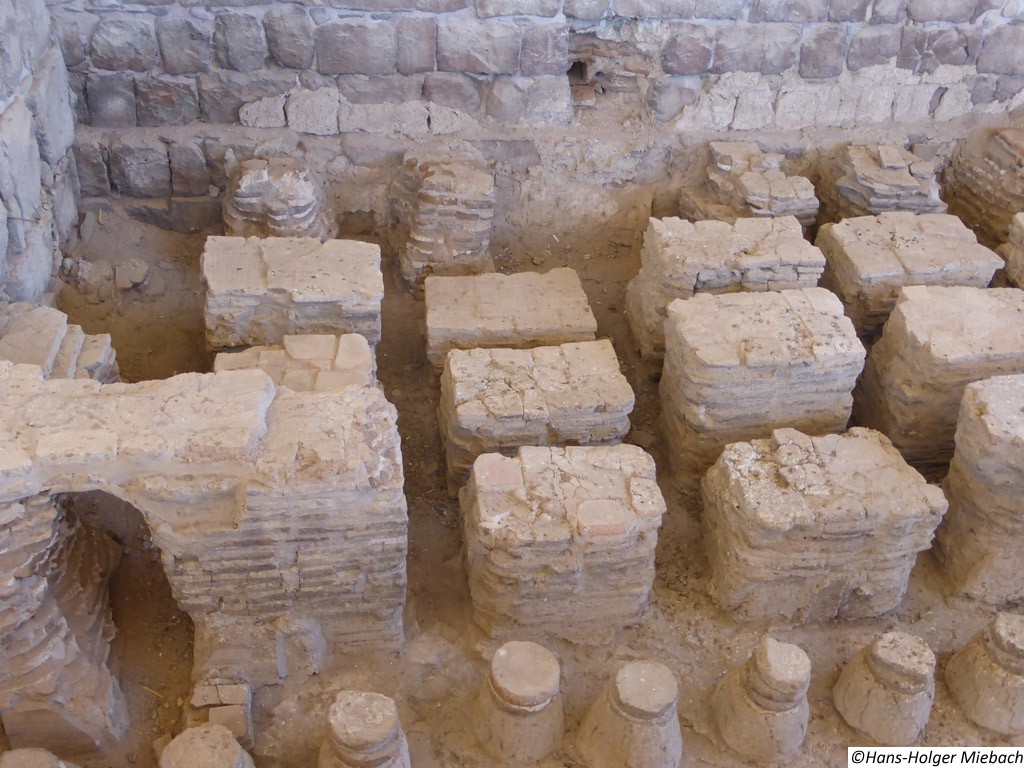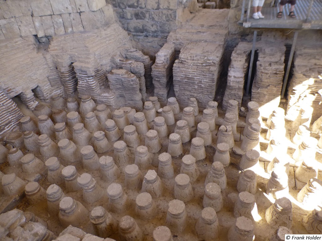 Bet Shean ist eine Stadt in der Ebene von Bet Schean im Nordbezirk Israels, ca. 25 km südlich des Sees Genezareth. Der Nationalpark gehört mit seinem weitläufigen Ausgrabungsgelände zu den interessantesten und wichtigsten archäologischen Stätten Israels. Diese Stätte ist sehr interessant insbesondere für Reisende, die sich für das römische und byzantinische Erbe des östlichen Mittelmeerraums interessieren. Biblische Bezüge: In Bet Shean stand ein Tempel für die Göttin Astarte. Dies mag der Tempel sein, in dem die Philister nach 1. Sam. 31, 10 die Waffen Sauls aufhängten. Der andere Tempel ist das Haus Dagons, an das die Philister das Haupt des Königs von Israel hefteten (1. Chr. 10, 10). Das Hintergrundbild zeigt das Heizungssystem im byzantinischen Badhaus. |