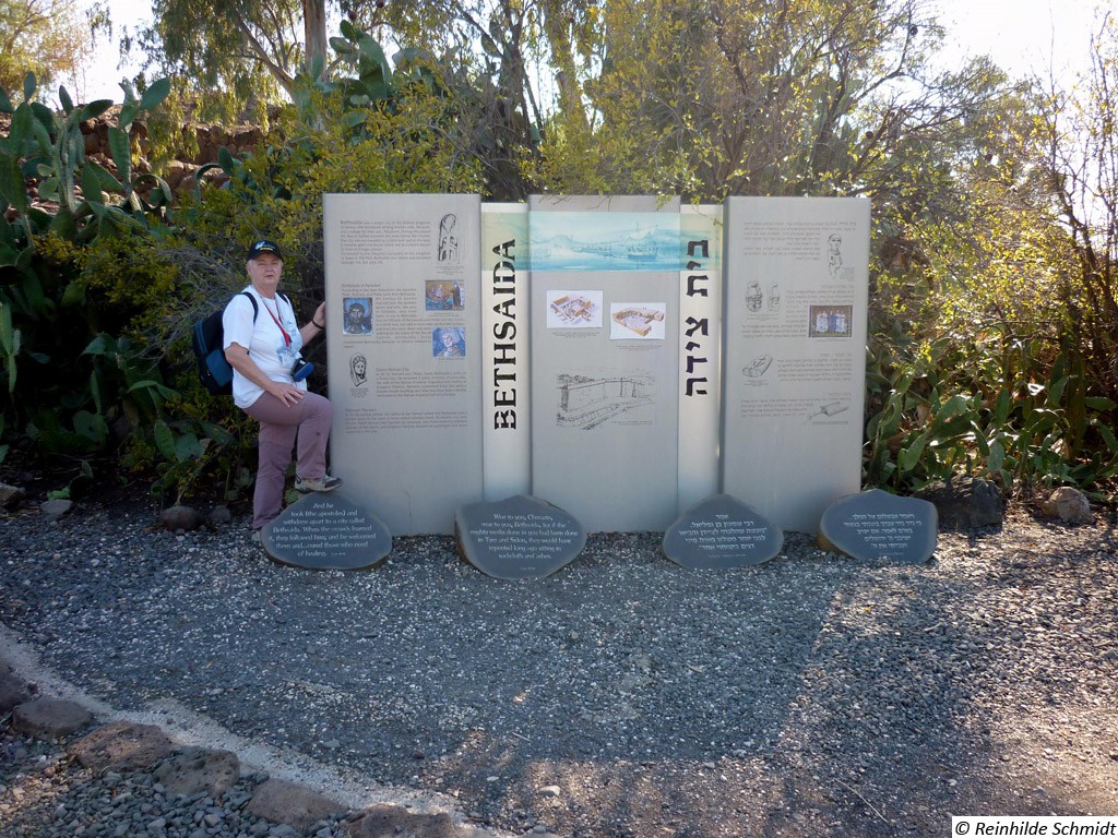 Bethsaida ("Haus der Fischerei") ist eine Ortschaft an der Nordküste des Sees Genezareth. Dieser Fischerdorf liegt ca. 1,5 km vom jetzigen Ufer des Sees entfernt. Biblische Bezüge: Betsaida war die Heimat von Petrus, Andreas und Philippus (Joh. 1:44). Hier fand auch die Speisung der 5.000 statt (Lukas 9:10-17) sowie die Heilung eines Blinden durch Jesus (Markus 8:22-26). Über Betsaida und die andere Stadt Chorazin spricht Jesus einen besonderen Weheruf aus: "Wehe dir, Chorazin! Wehe dir, Betsaida! Denn wenn in Tyrus und Sidon die Wunderwerke geschehen wären, die unter euch geschehen sind, längst hätten sie in Sack und Asche Buße getan." (Mt.11,21) Das Hintergrundbild zeigt die Ruinen des Fischdorfes Bethsaida. |
