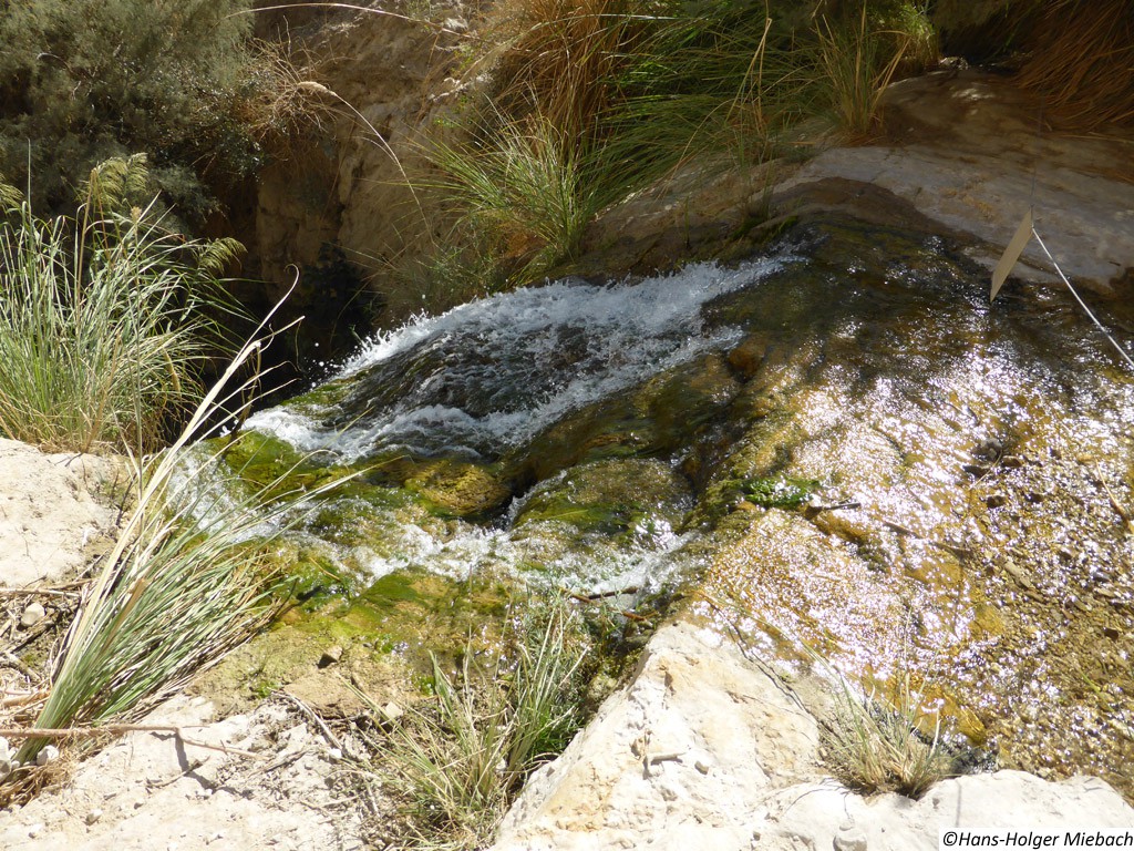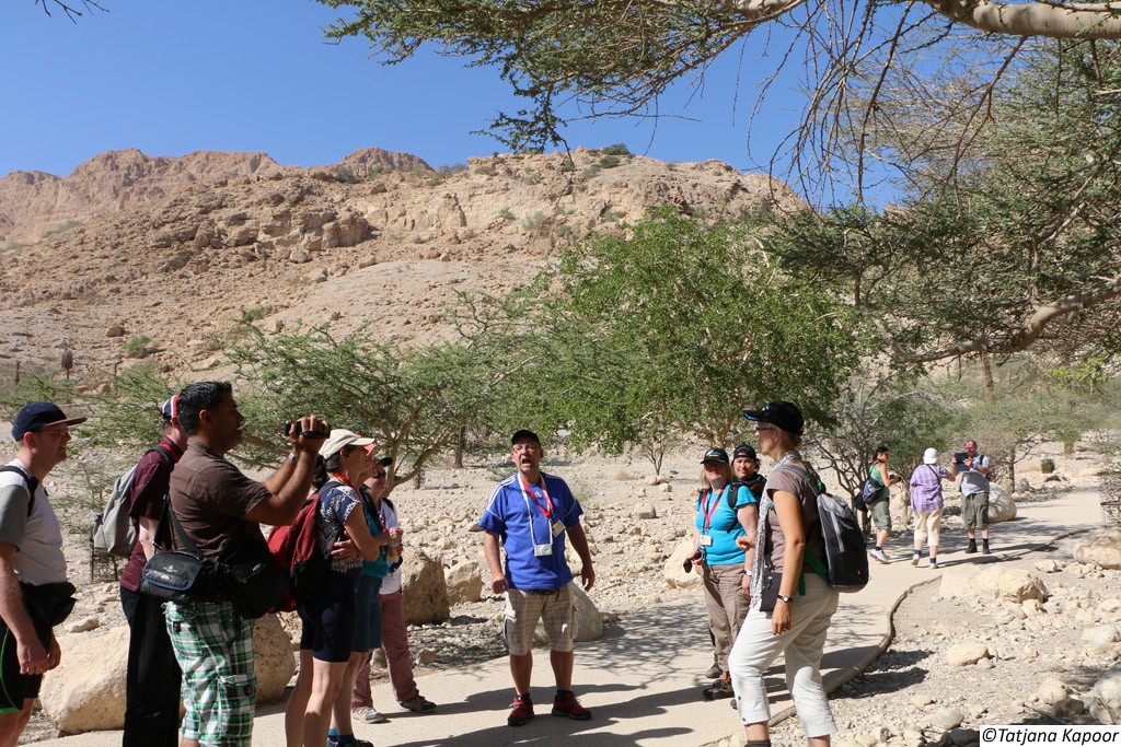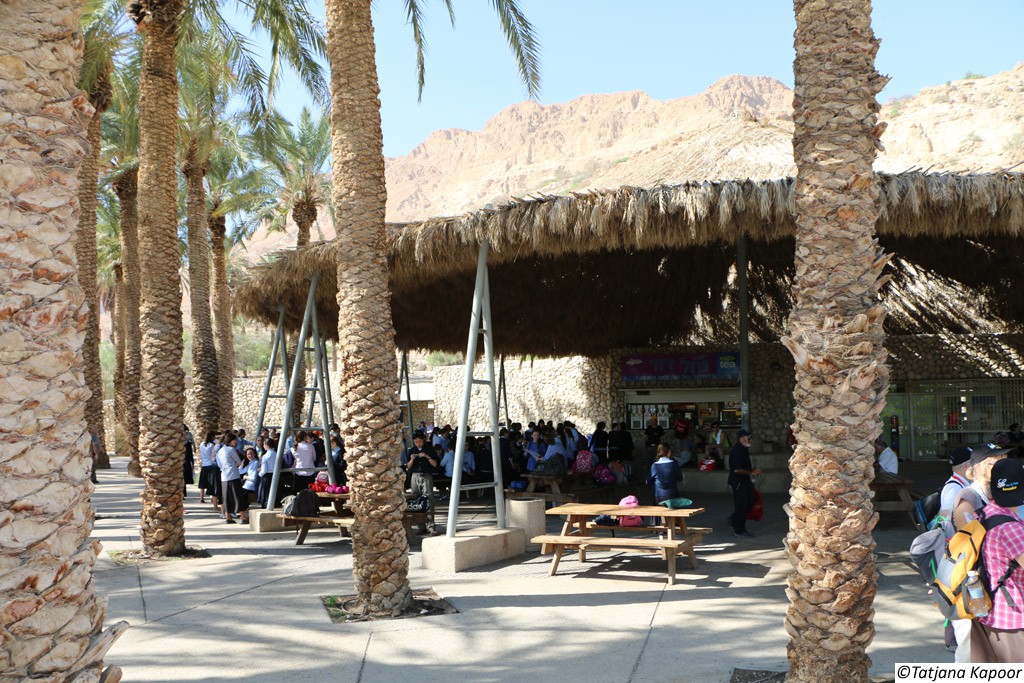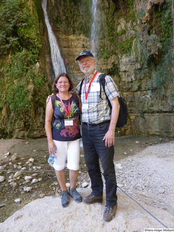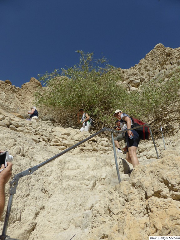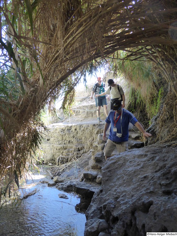 En Gedi oder Wadi David ist eine wasserreiche Oase im nördlichen Teil der israelischen Wüste Negev. Sie liegt am Westufer des Toten Meeres, nur wenige Kilometer südlich der Grenze zum Westjordanland. Biblische Bezüge: Die Felsen von En Gedi sind reich an geräumigen Höhlen. In einer dieser Höhlen könnten sich König David und seine Männer versteckt haben (1.Samuel 24,1-2). Das Hintergrundbild zeigt die Felsen von En Gedi. |