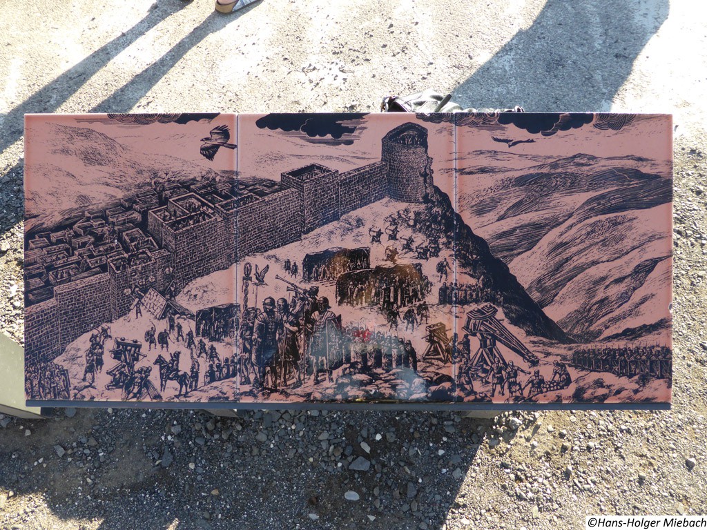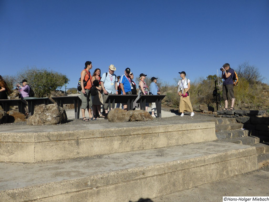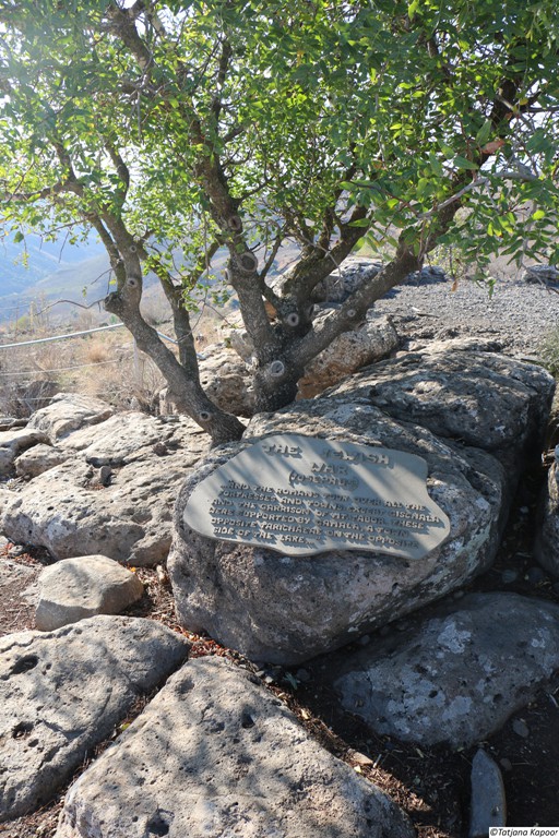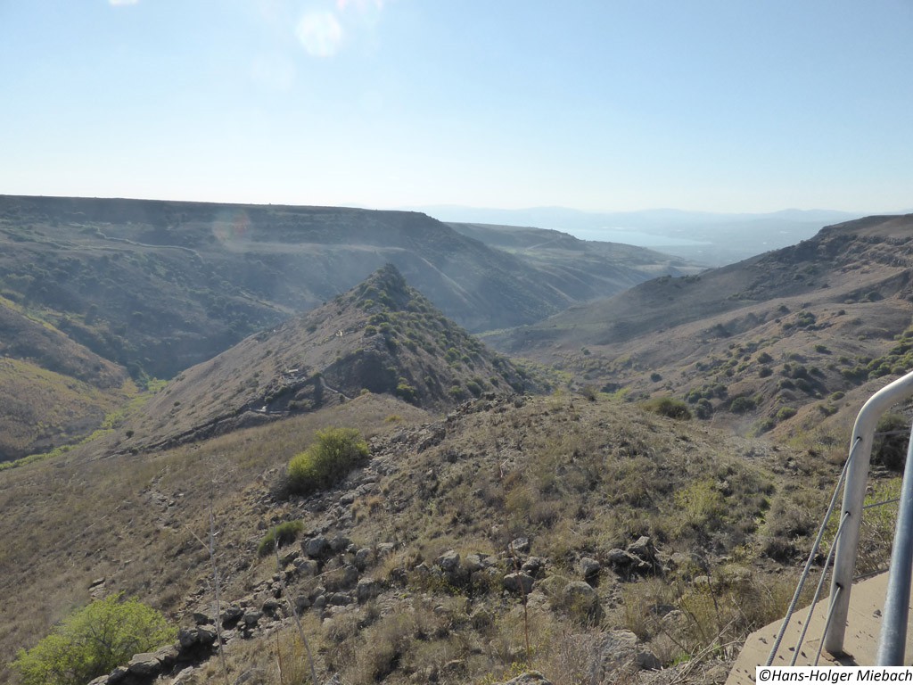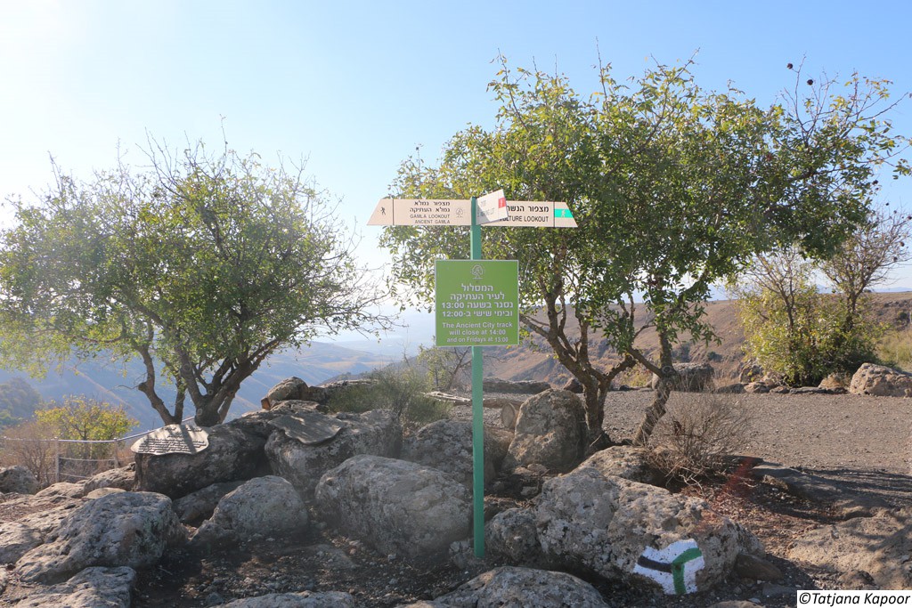 Gamla war eine alte jüdische Stadt auf den Golan-Höhen. Während des großen jüdischen Kriegs leistete die Stadt den erbitterten Widerstand gegen die Römer. Erst im Winter 67 n. Chr. nach längerer Belagerung fiel sie in die Hände der Römer. Die römischen Truppen zerstörten und plünderten die Stadt vollständig. Sie wurde nie mehr aufgebaut und wurde vergessen. Erst nach dem Sechstagekrieg wurden die Ruinen der Stadt wiederentdeckt. Wegen des Widerstandes gegen die Römer ist Gamla ("Masada des Nordens") ein Symbol des Heldentums für den modernen Staat Israel. Sie ist auch ein wichtiger historischer und archäologischer Standort. Gomla liegt innerhalb des gegenwärtigen Gamla Naturschutzgebiets und ist eine bedeutende Touristenattraktion. Die Stadt verfügte über eine großräumige Synagoge. Das Hintergrundbild zeigt den Nachbau eines römischen Katapultgeschosses. |