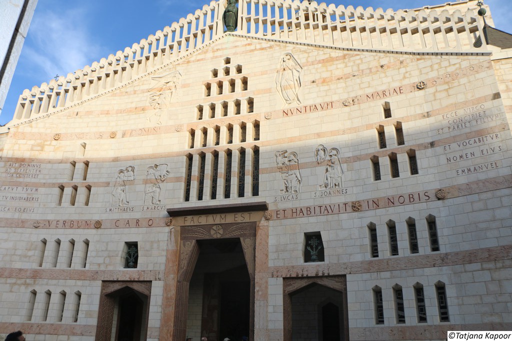 Die Stadt Nazareth liegt in Israel am Nordrand der Jesreel-Ebene, in einem Seitental der Berge Galiläas. Der Ort wird von Juden, Muslimen und Christen bewohnt. Biblische Bezüge: In Nazareth verkündete der Erzengel Gabriel Maria die Geburt ihres Sohnes (Lukas 1,26-38). Jesus Christus verbrachte Jesus Christus seine Kindheit und lebte mit Josef und Maria. In Nazareth begann Jesus sein öffentliches Wirken. Das Hintergrundbild zeigt die katholische Verkündigungsbasilika. |